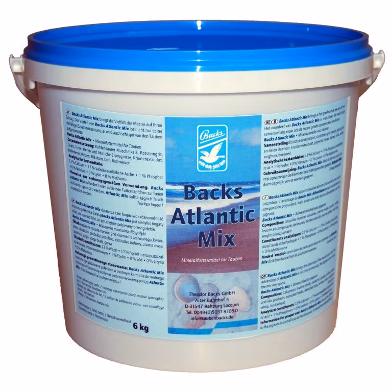 Ger havets mångfald till hands. Fördelen med Backs Atlantic Mix är inte bara dess mångsidiga sammansättning, den intas också helt av duvorna. Utöver mineraler som musselskal och Red Stone innehåller Backs Atlantic Mix även öljästpellets och örtextrudat.