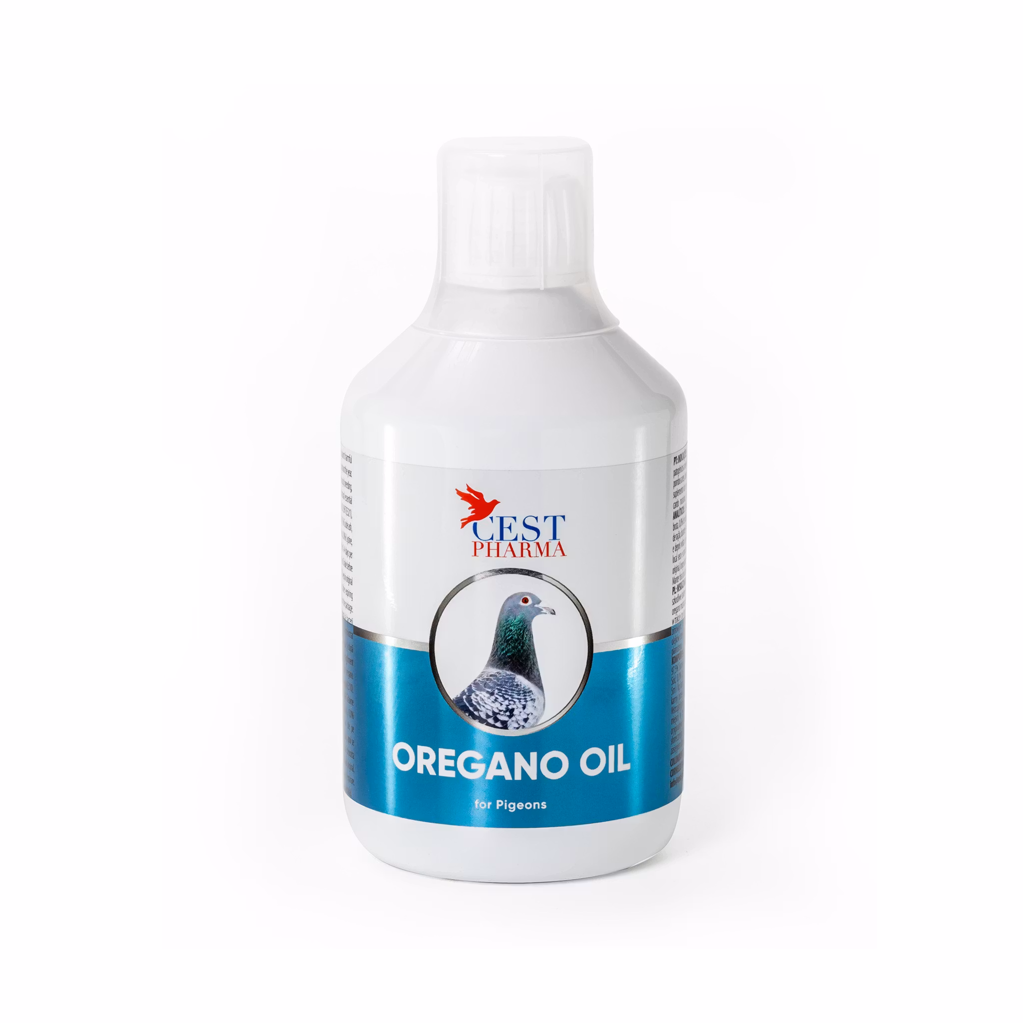 Näringstillskott för duvor. Ökar motståndskraften mot ogynnsamma bakterier och mögel i magtarmarna. Oreganoolja kan administreras under hela året. Stödjer duvornas hälsa före, under och efter flygningar och under avel, fällning och vila. Det är ett energiskt näringstillskott baserat på naturliga eteriska oljor från oreganoväxten.